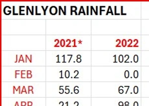 At the end of February 2026 Glenlyon has received 10% of the past 5-year average annual rainfall.